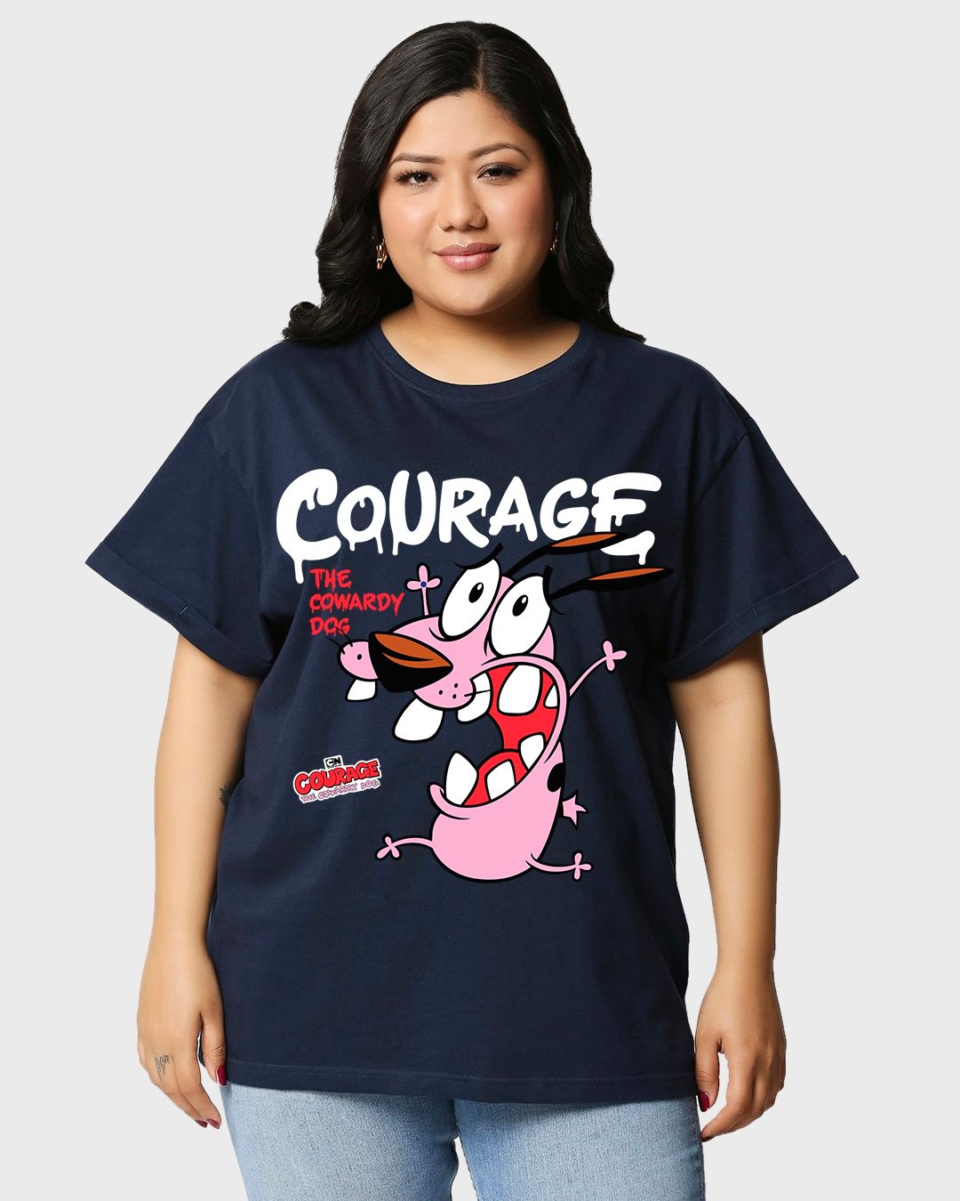 Women's Blue Beware Of The Dog Graphic Printed Boyfriend Plus Size T-shirt