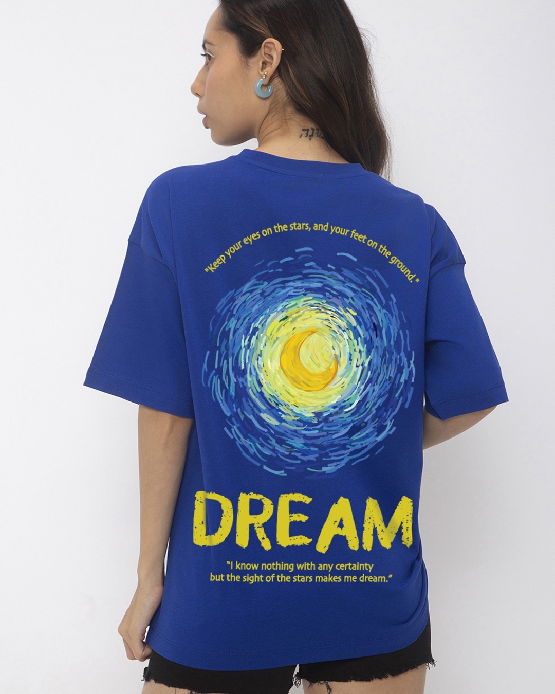 Women's Blue Dream Graphic Printed Oversized T-shirt