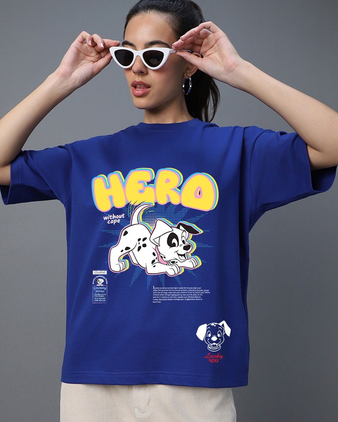 Women's Blue Hero Without Cape Graphic Printed Oversized T-shirt