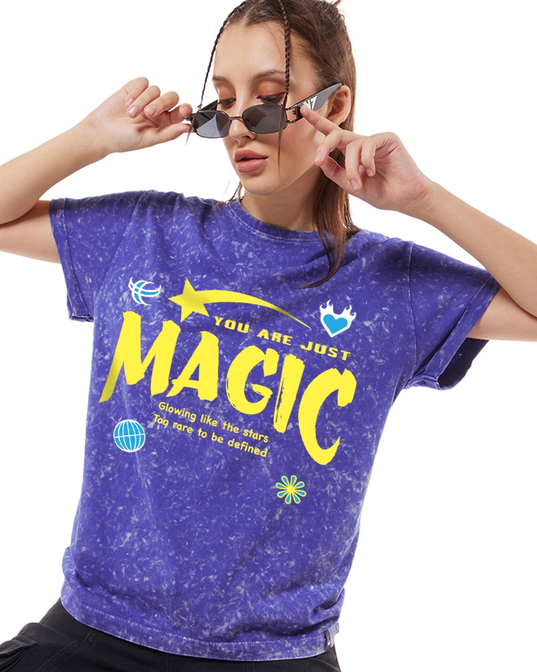 Women's Blue Magic Graphic Printed Boyfriend Acid Wash T-shirt