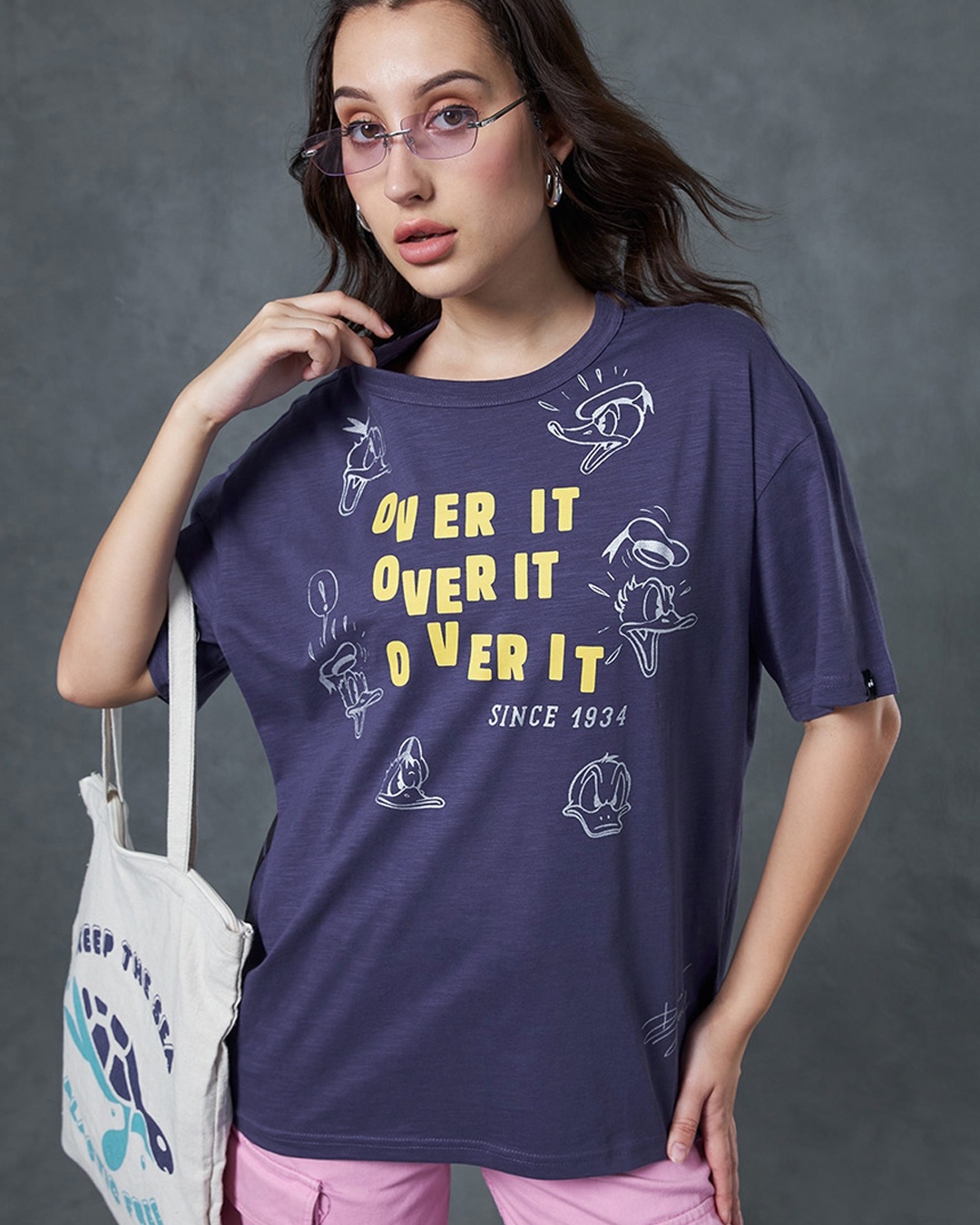 Women's Skipper Blue Over It Graphic Printed Oversized T-shirt