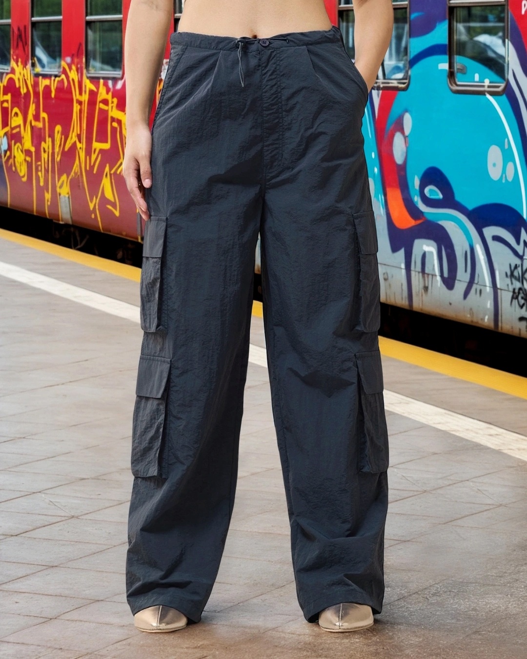 Women's Blue Baggy Oversized Cargo Parachute Pants