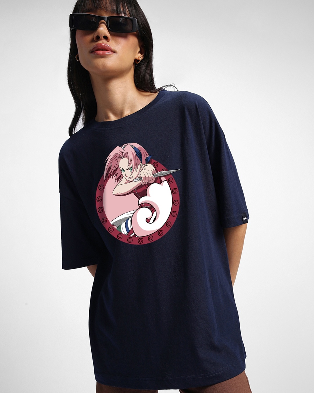 Women's Blue Sakura Graphic Printed Oversized T-shirt