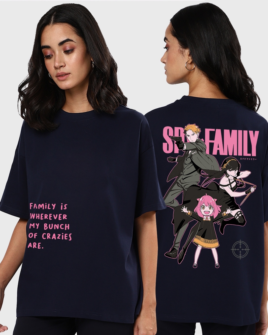 Women's Blue Spy X Family Crazy Graphic Printed Oversized T-shirt