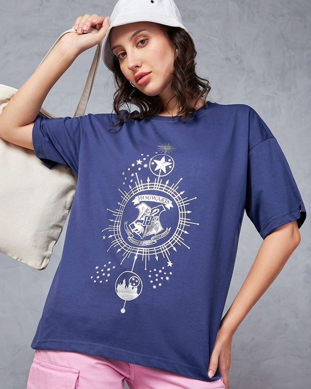 Women's Skipper Blue Welcome Home Graphic Printed Oversized T-shirt