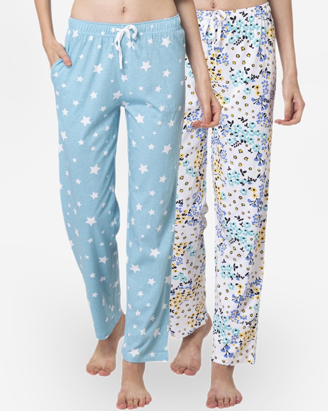 Pack of 2 Women's Blue & White Printed Pyjamas