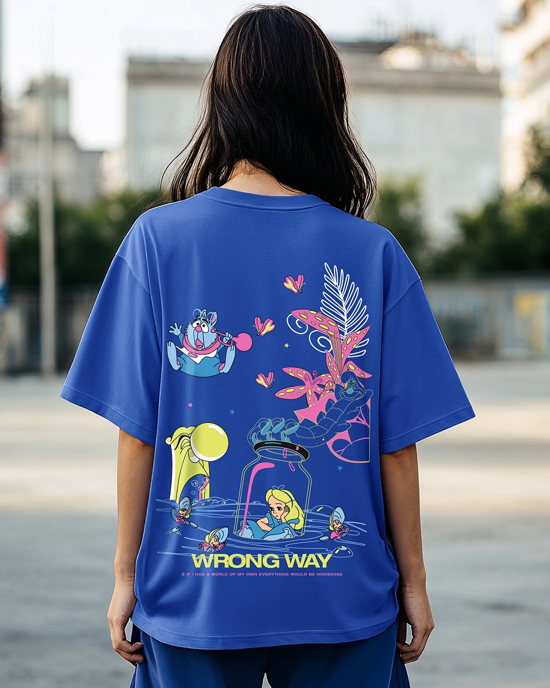 Women's Blue Wrong way Graphic Printed Oversized T-shirt