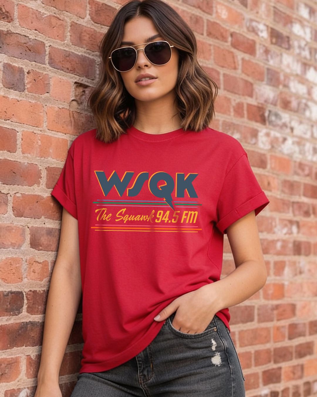 Women's Bold Red WSQK Typography Boyfriend T-shirt
