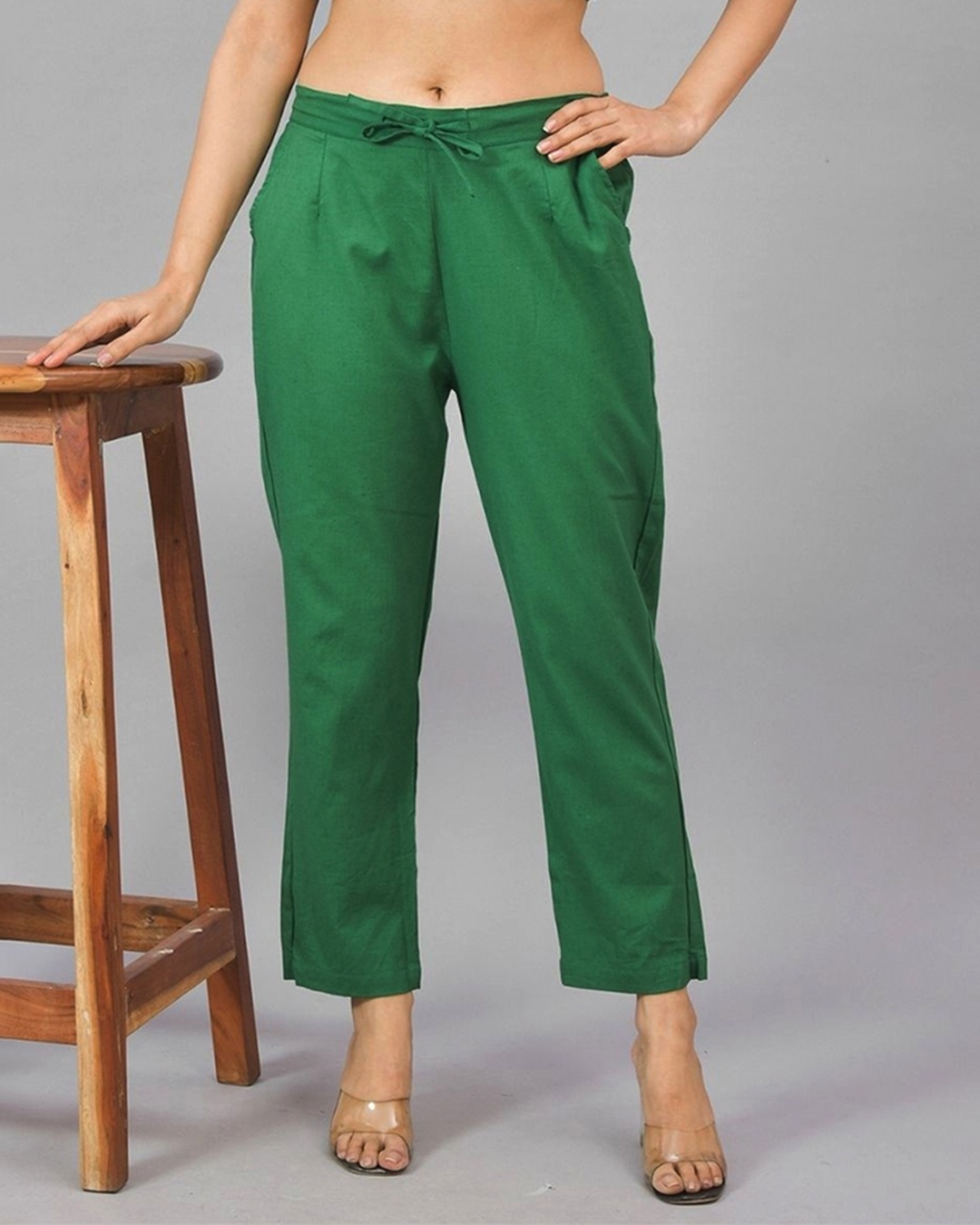 Women's Bottle Green Relaxed Fit Casual Pants
