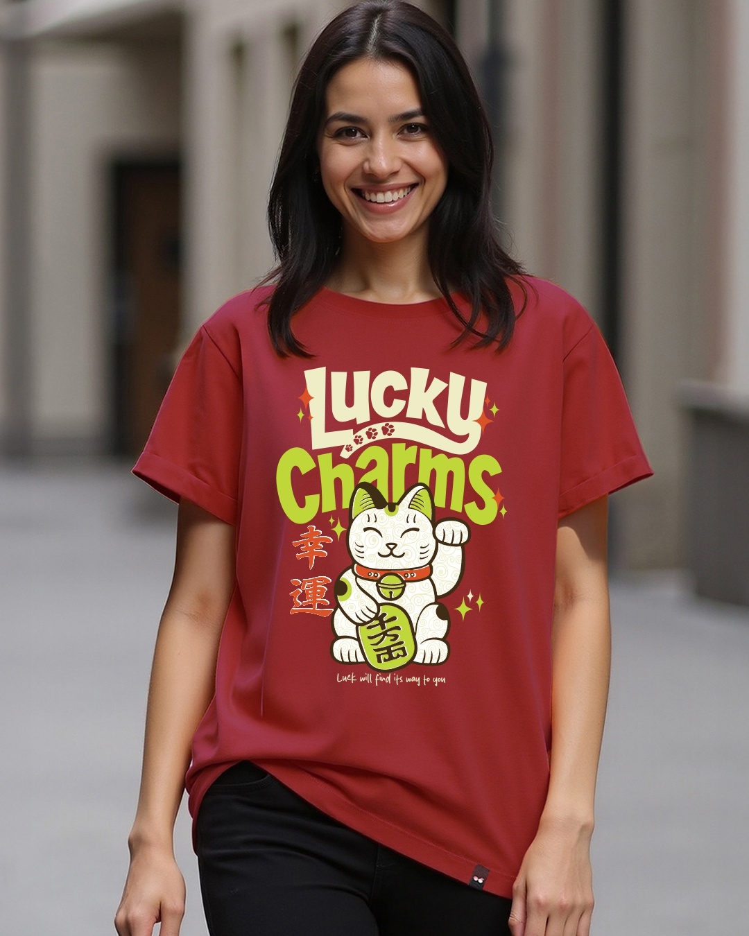 Women's Brick Red Lucky Charm Graphic Printed Boyfriend T-shirt