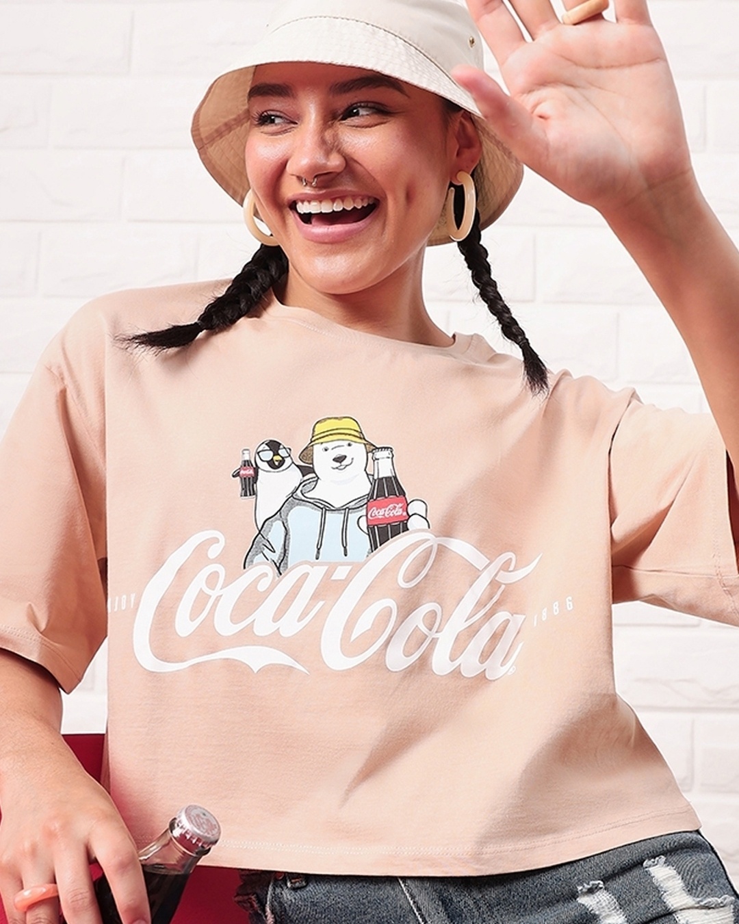 Women's Brown Chill Polar Bear Graphic Printed Oversized Short Top