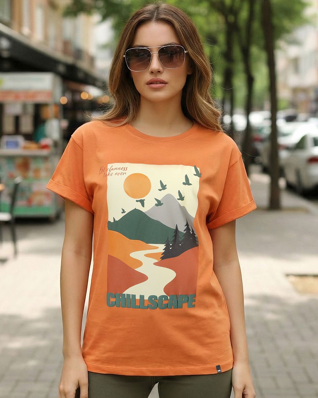 Women's Caramel Orange Chillscape Graphic Printed Boyfriend T-shirt