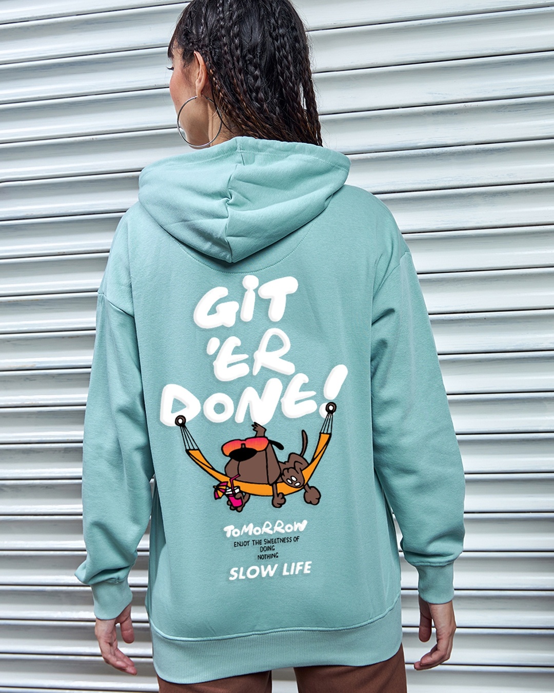 Women's Cyan Get it Done Graphic Printed Oversized Hoodies