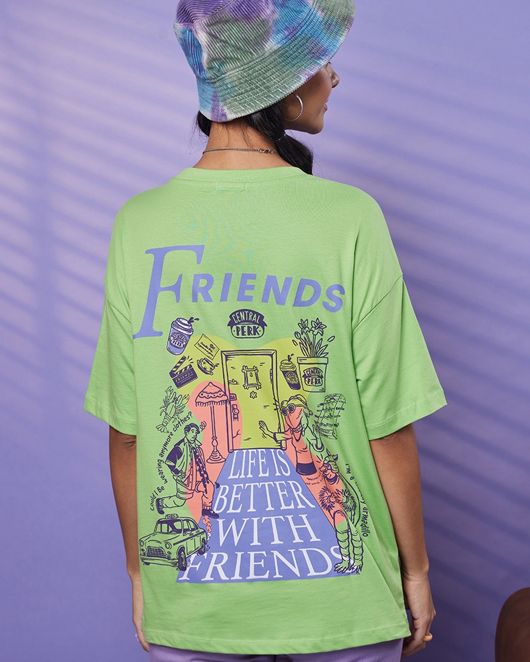 Women's Green Life Better Graphic Printed Oversized T-shirt