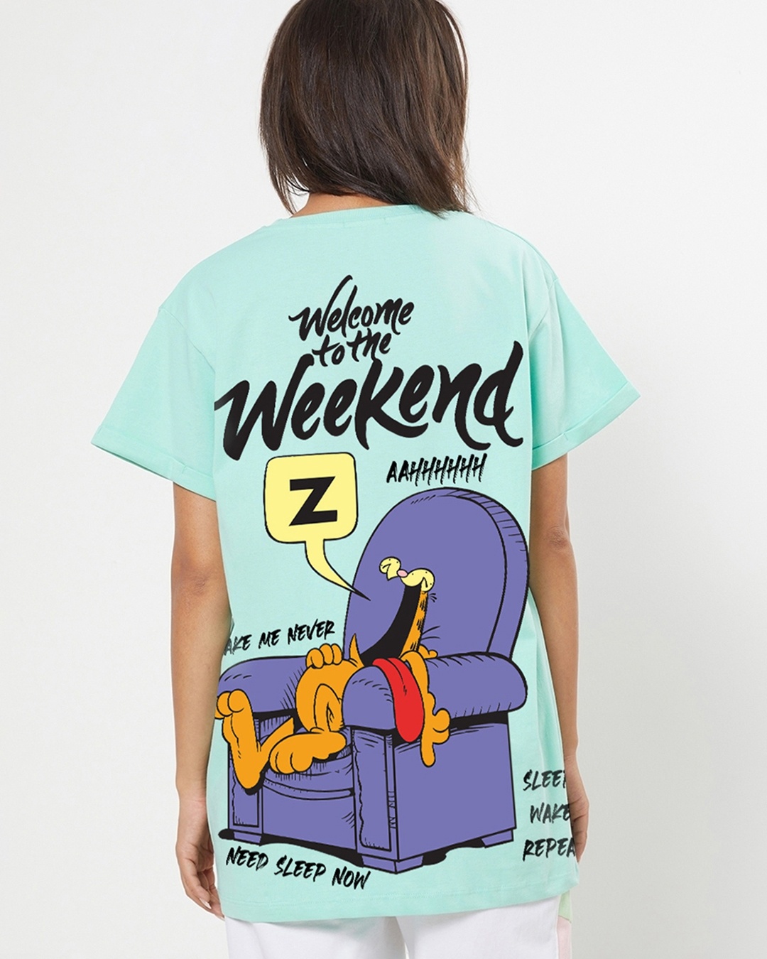 Women's Green Live for Weekend Graphic Printed Boyfriend T-shirt