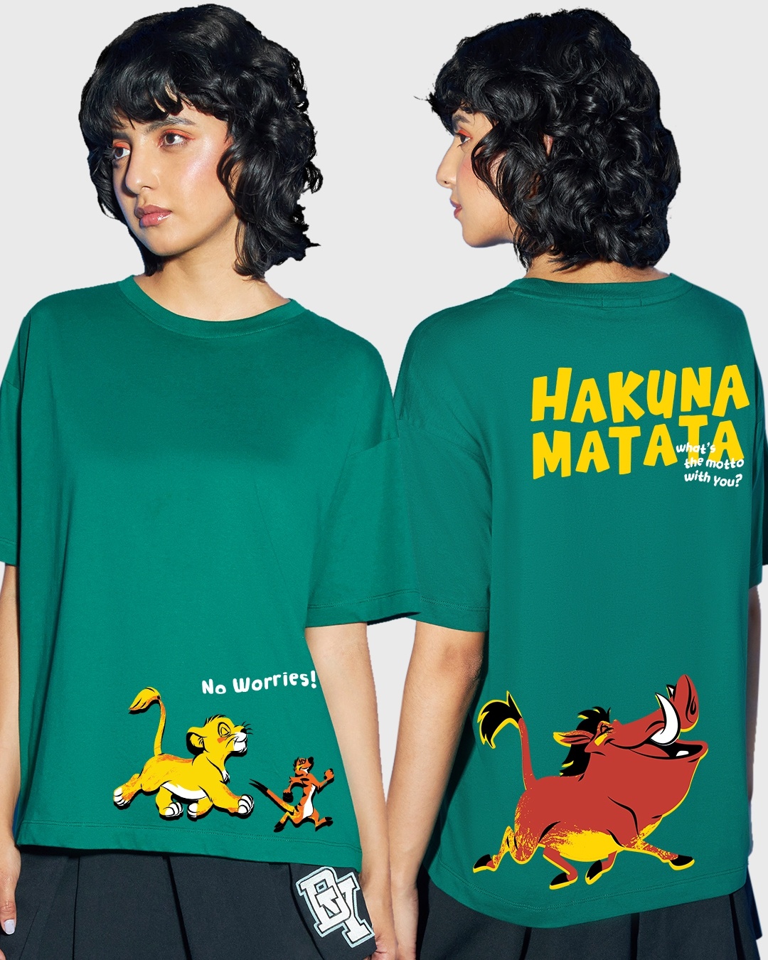Women's Green No Worries Friends Graphic Printed Oversized T-shirt
