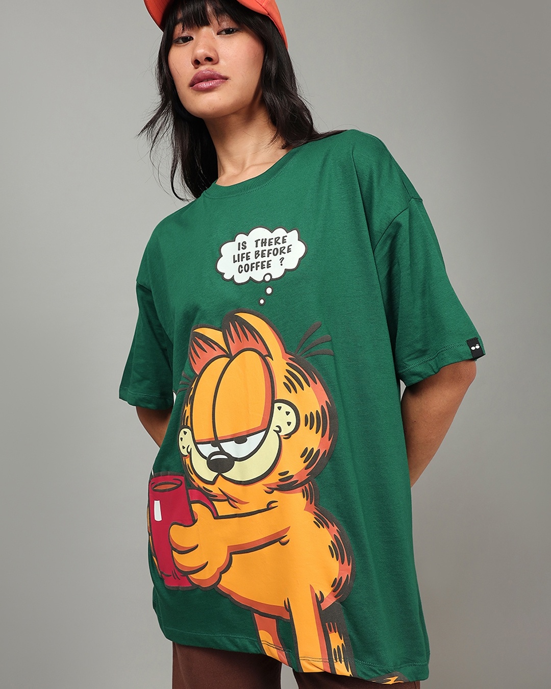 Women's Green Rock Garfield Graphic Printed Oversized T-shirt