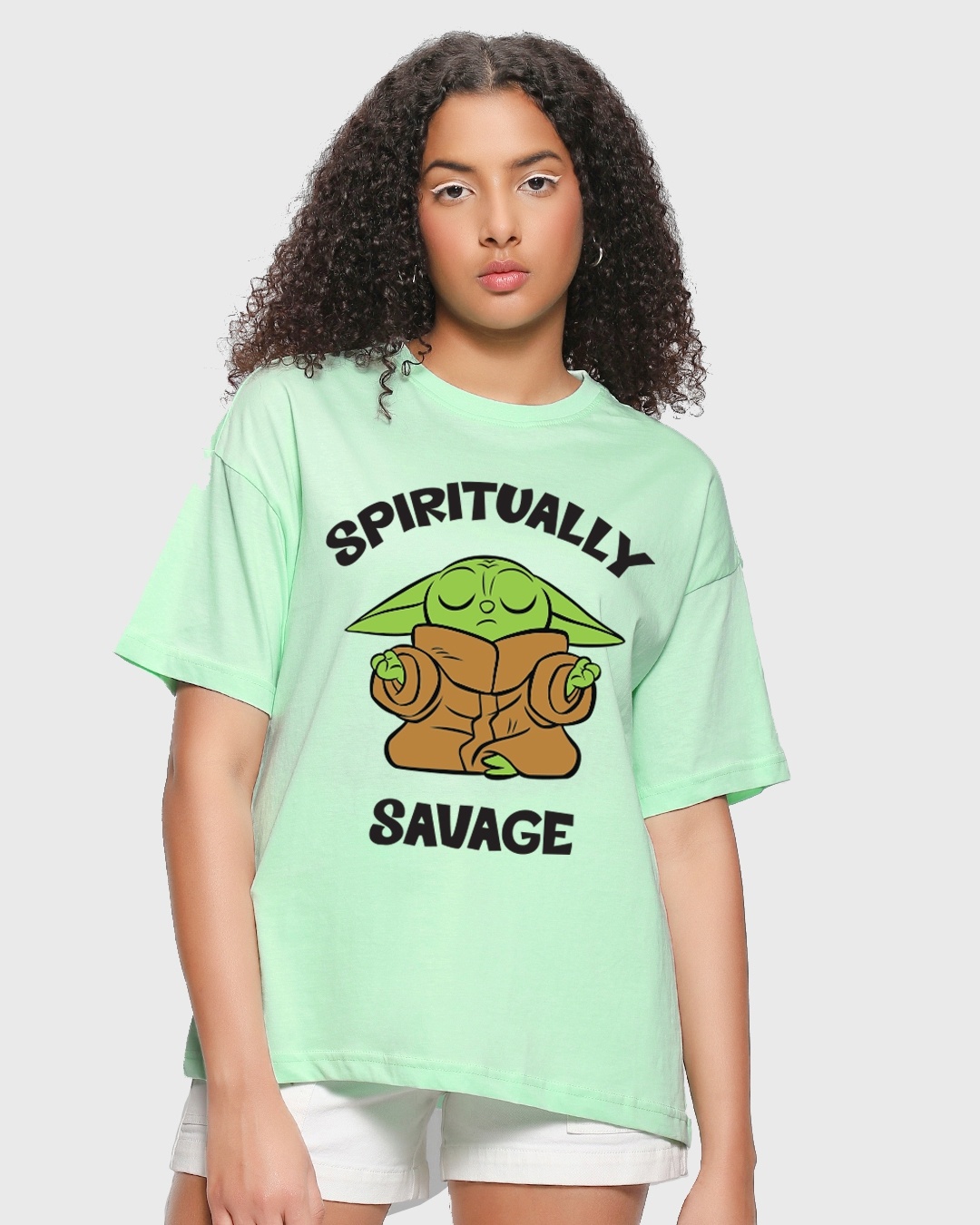Women's Green Spiritually Savage Graphic Printed Oversized T-shirt