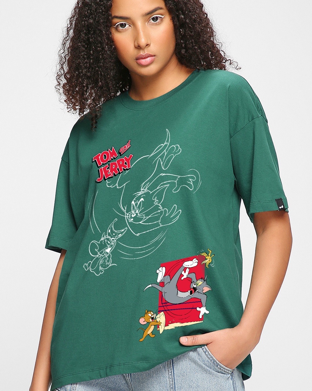 Women's Green Trouble Maker Graphic Printed Oversized T-shirt
