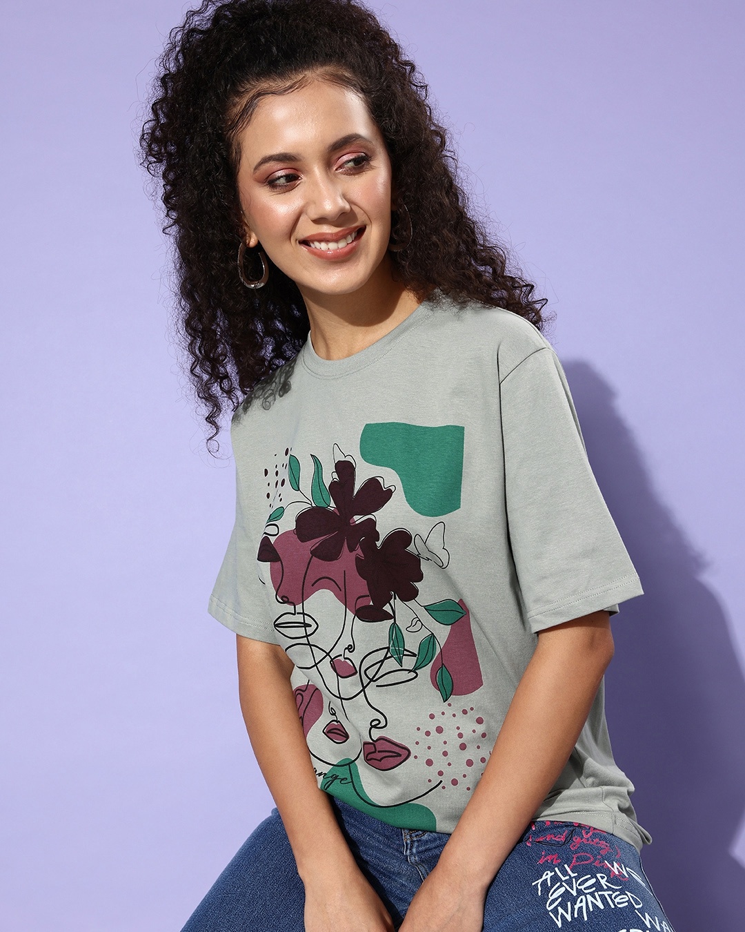 Women's Grey Graphic Printed Oversized T-shirt