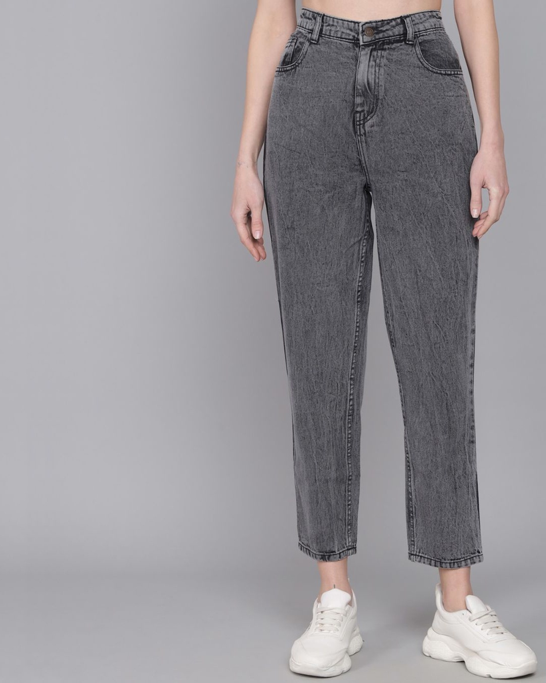 Women's Grey High Rise Relaxed Fit Jeans