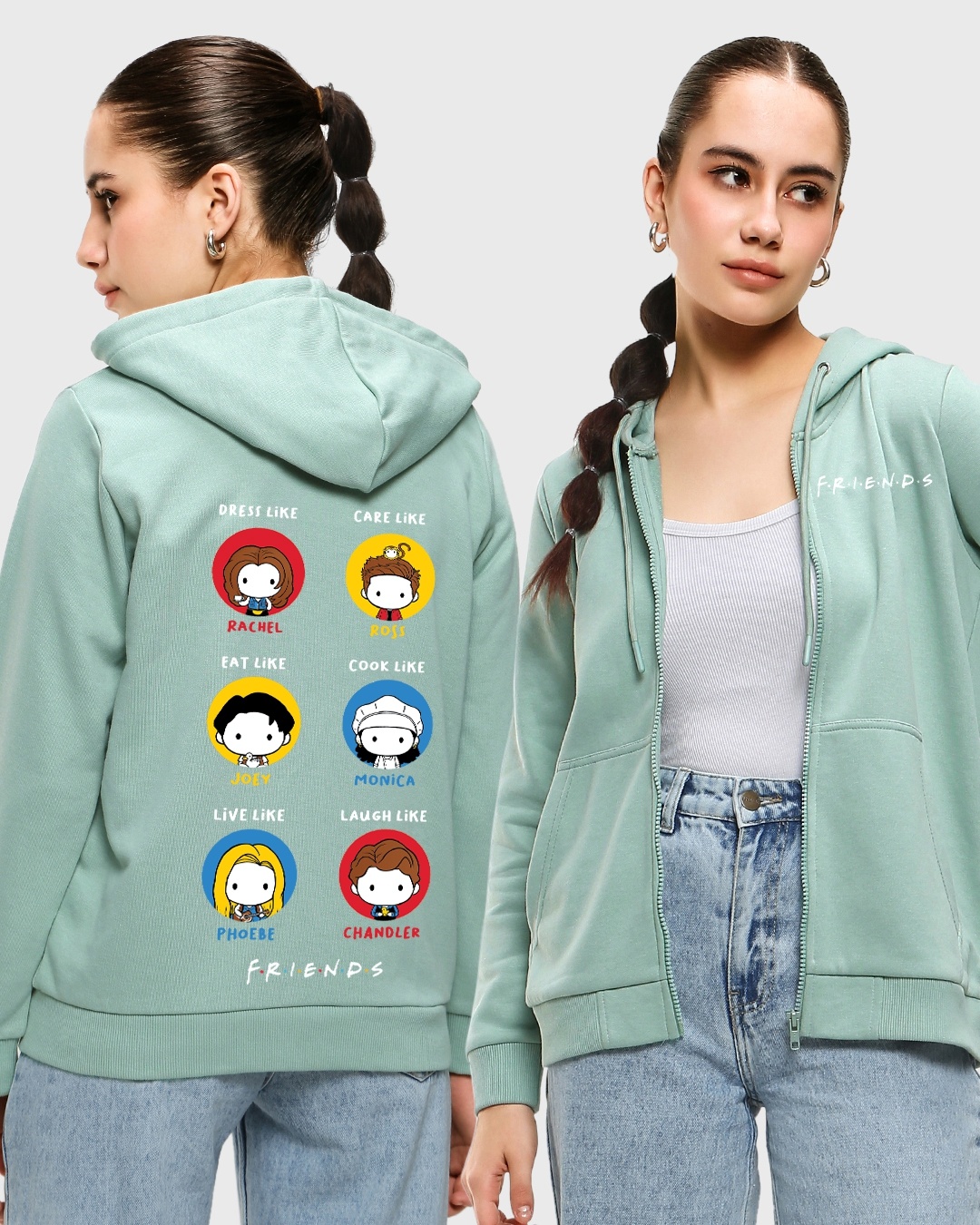 Women's Cyan I'll Be There For You Graphic Printed Zipper Hoodies