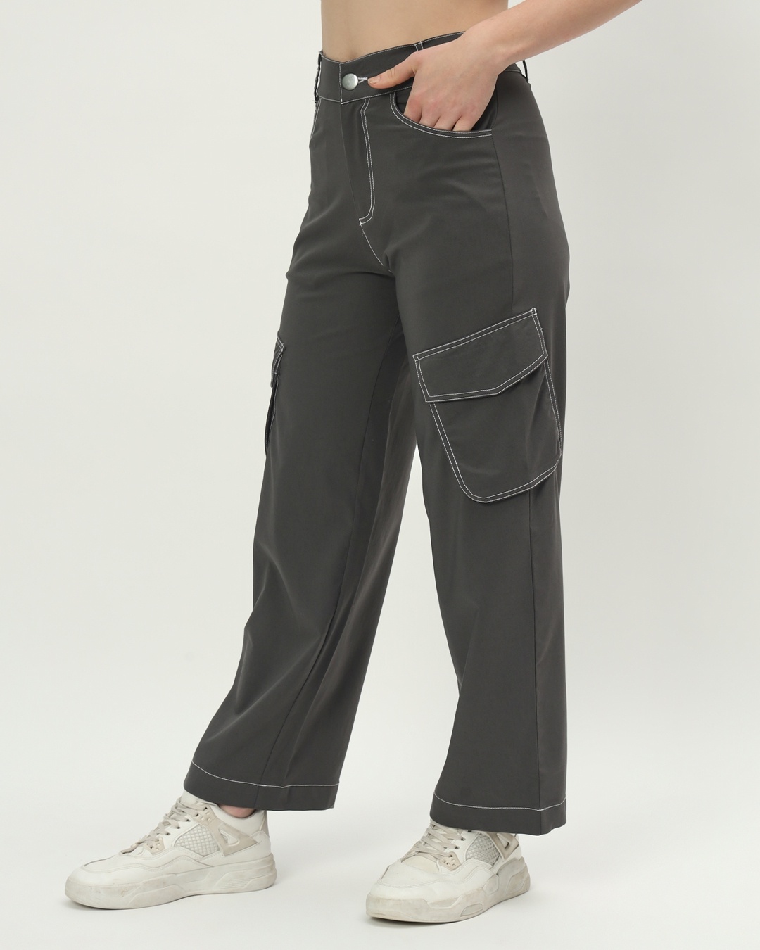 Women's Grey Straight Fit Cargo Pants