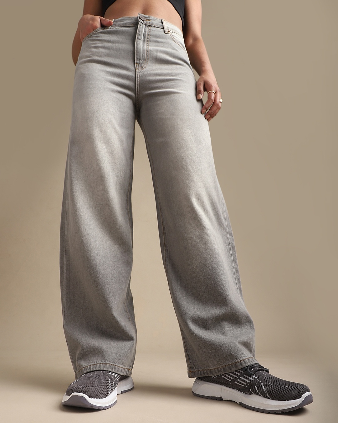 Women's Grey Washed Baggy Relaxed Fit Jeans
