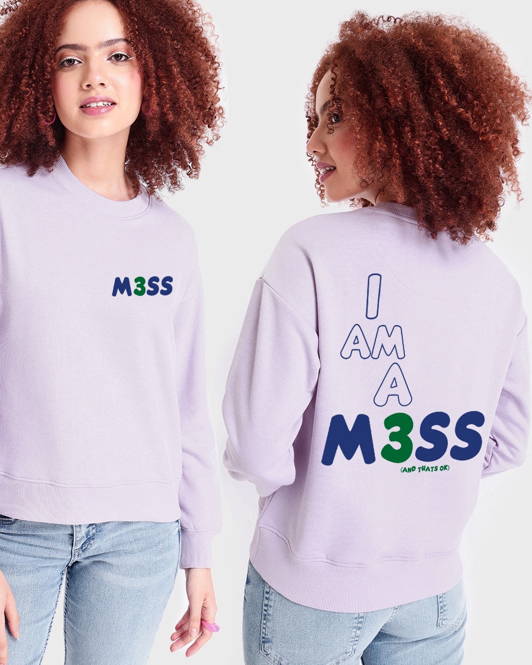 Women's Purple I Am a Mess Typography Oversized Sweatshirt