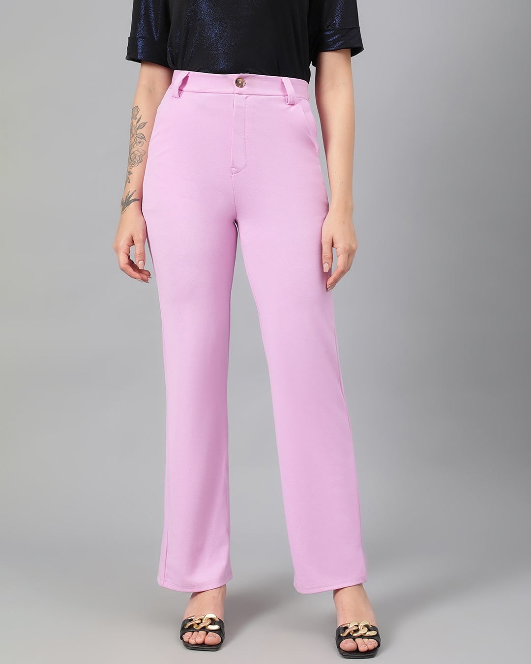 Women's Lavender Purple Straight Fit Trousers