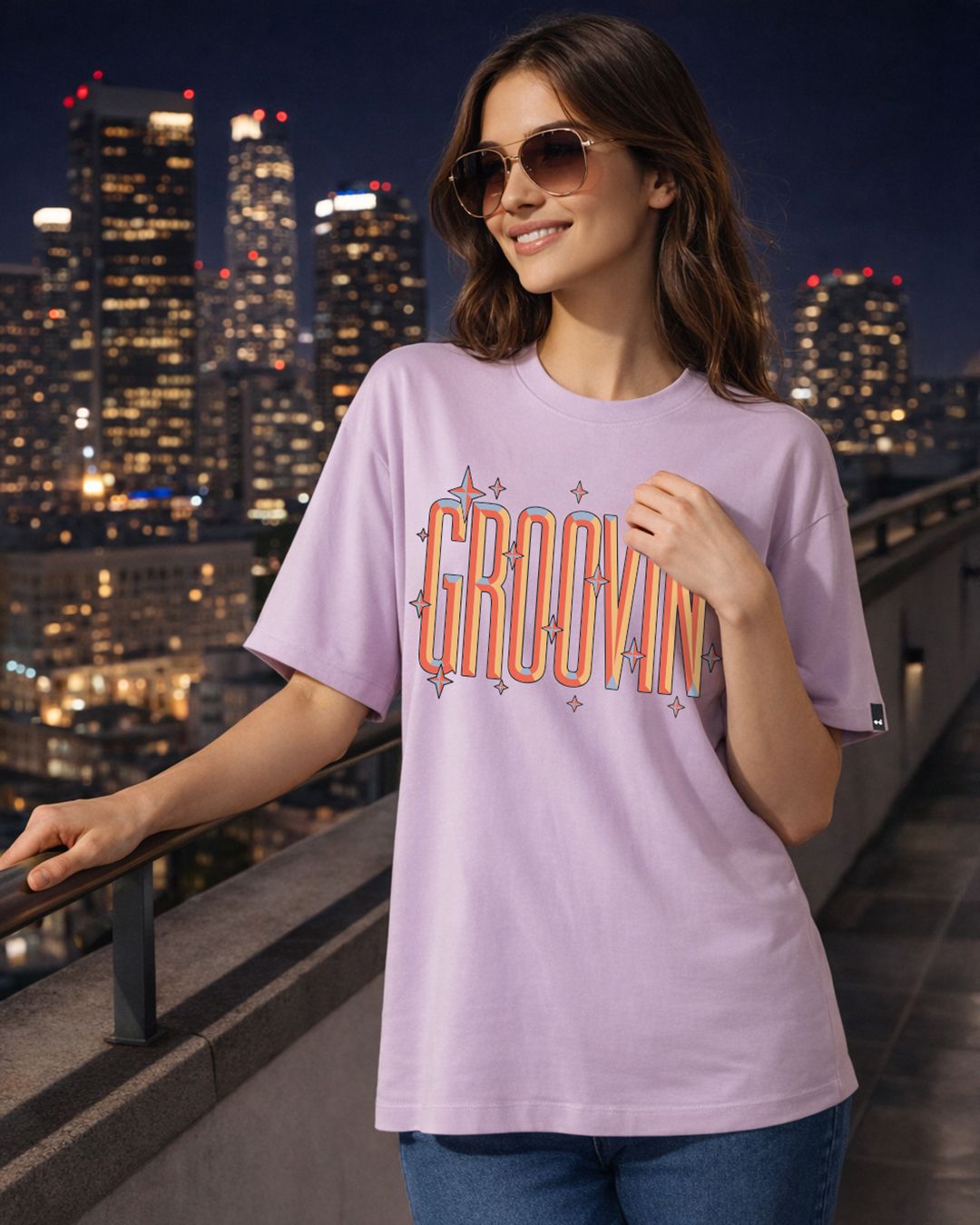 Women's Lilac Bloom Grooving Typography Oversized T-shirt