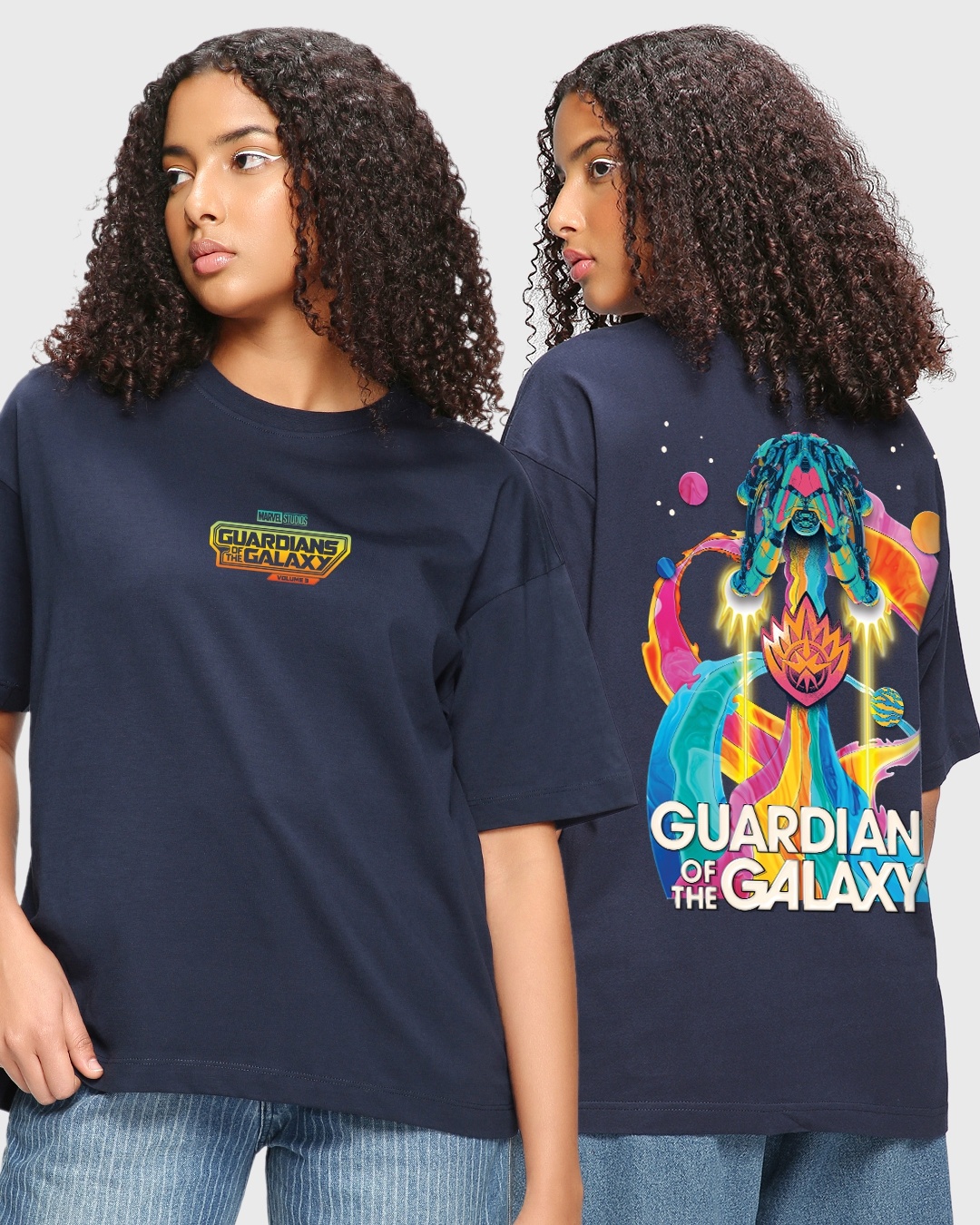 Women's Navy Blue Guardians Of The Galaxy Graphic Printed Oversized T-shirt