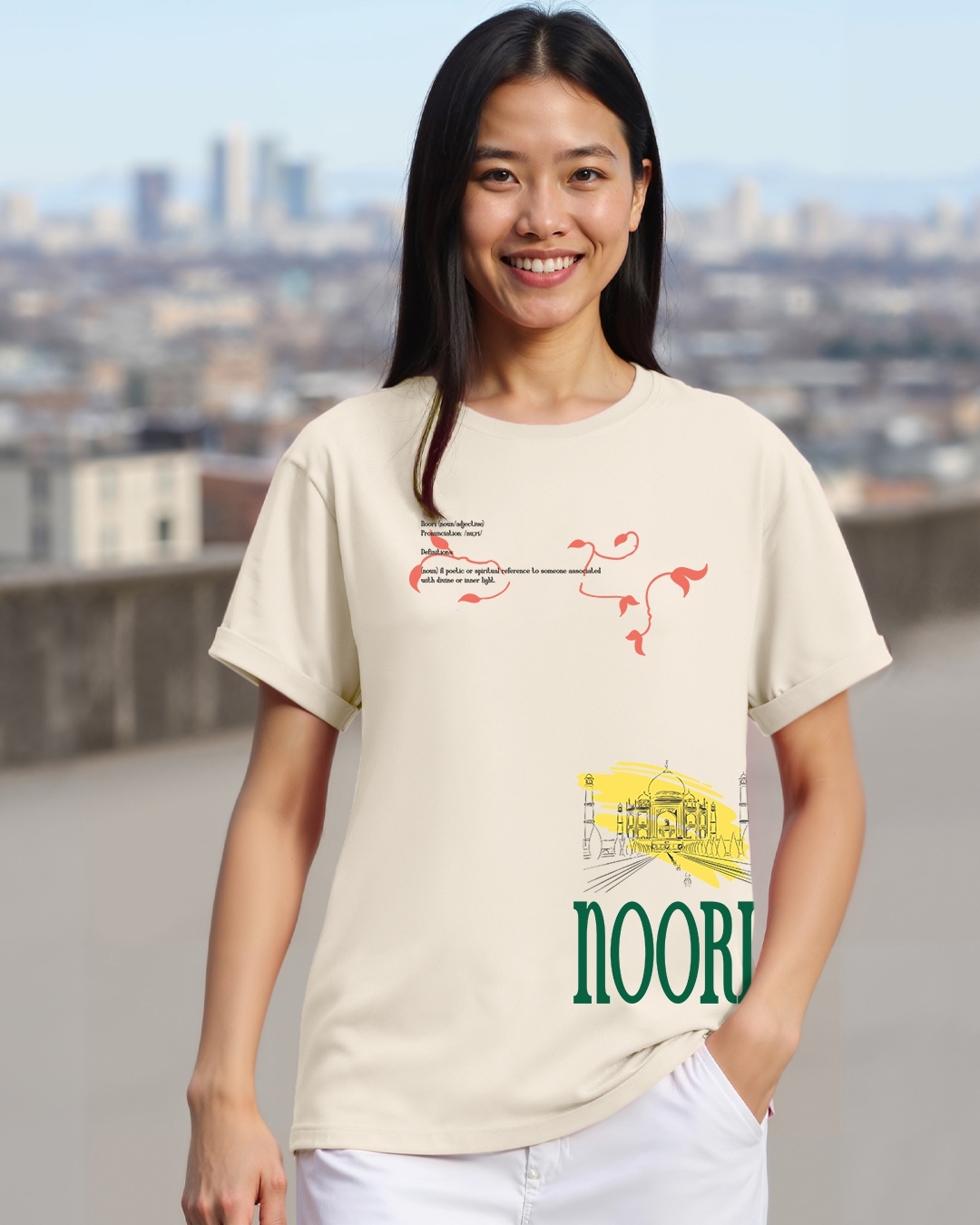 Women's Beige Noori Graphic Printed Boyfriend T-shirt