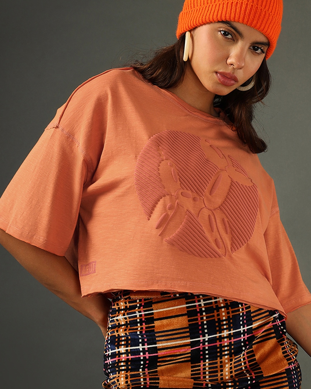 Women's Orange Air Ballon Graphic Printed Oversized Short Top