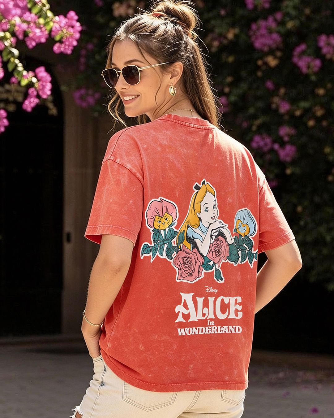 Women's Orange Garden Graphic Printed Oversized Acid Wash T-shirt