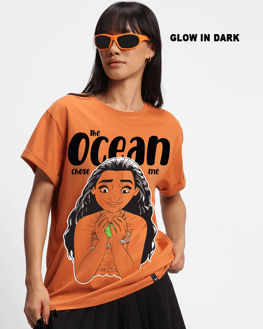 Women's Orange Moana Graphic Printed Boyfriend T-shirt