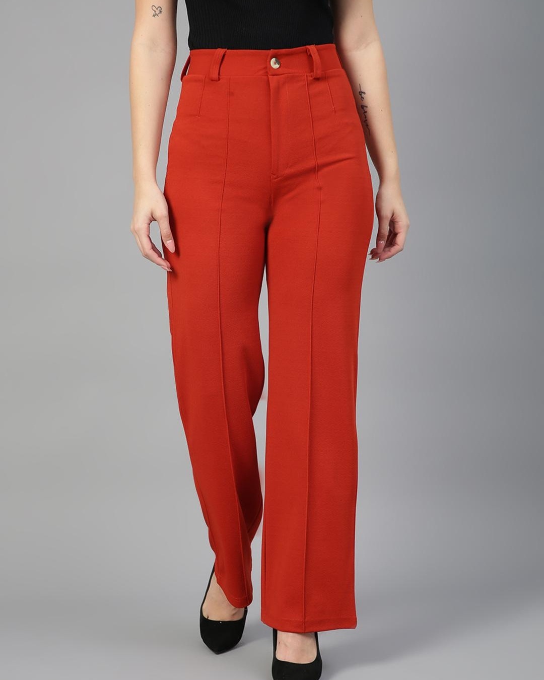Women's Orange Straight Fit Trousers