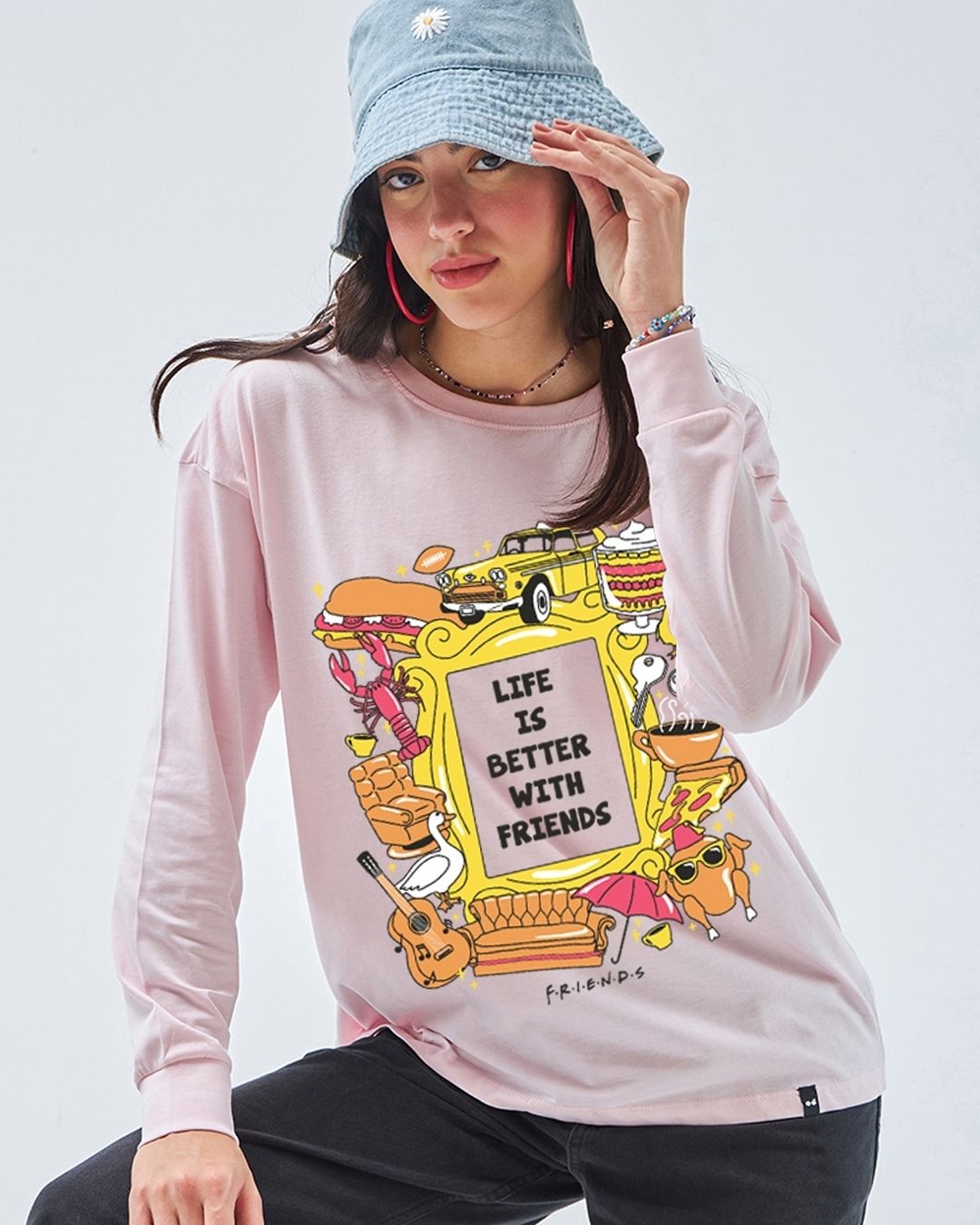 Women's Pink Friends Life Graphic Printed Oversized T-shirt