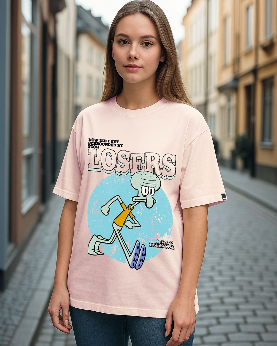Women's Pink Loser Graphic Printed Oversized T-shirt