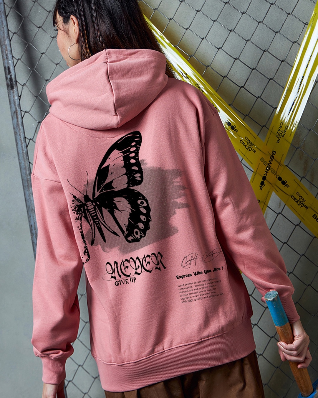 Women's Pink Never Give Up Graphic Printed Oversized Hoodies
