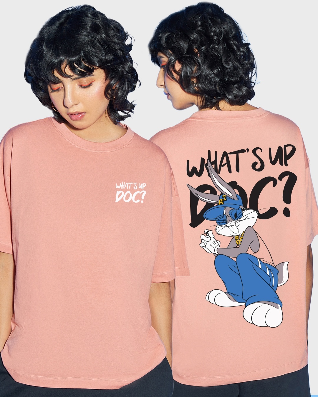 Women's Pink What's Up Doc Graphic Printed Oversized T-shirt