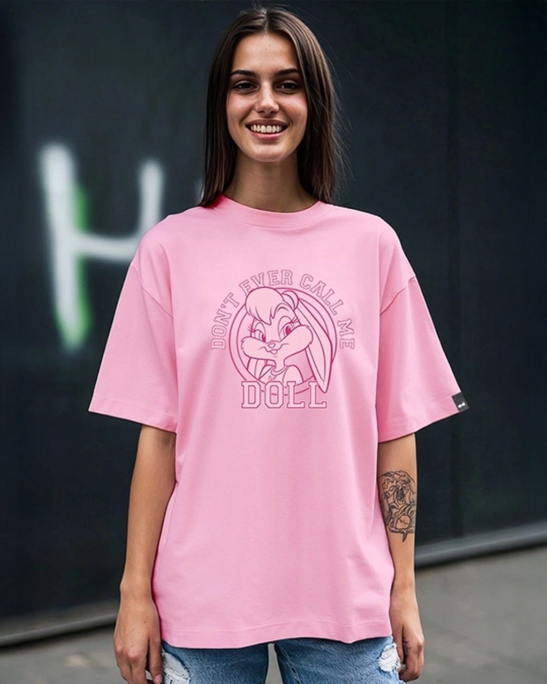 Women's Prism Pink Don't Ever Call Me Doll Graphic Printed Oversized T-shirt