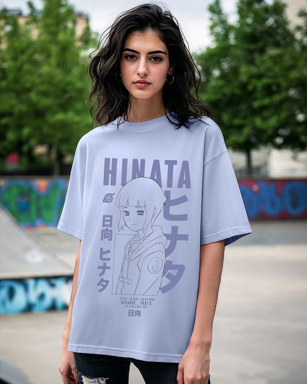 Women's Baby Lavender Lady Hinata Graphic Printed Oversized T-shirt