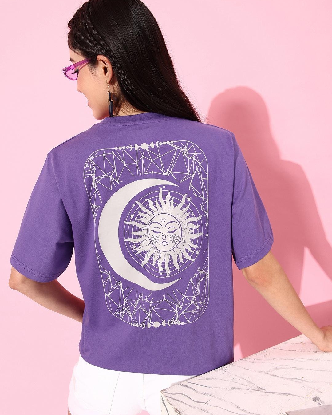 Women's Purple Graphic Printed Oversized T-shirt