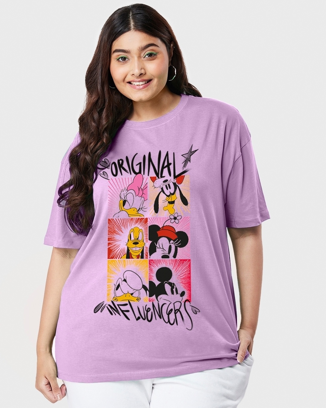 Women's Purple Original Influencers Graphic Printed Oversized Plus Size T-shirt