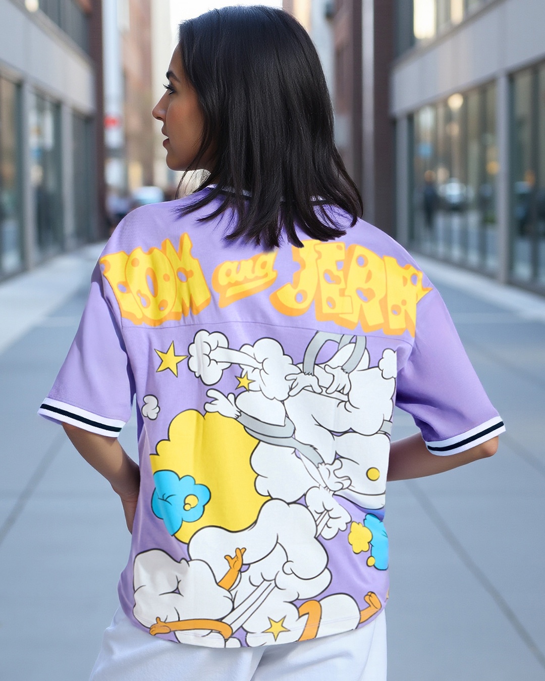 Women's Purple Tom N Jerry Graphic Printed Oversized T-shirt