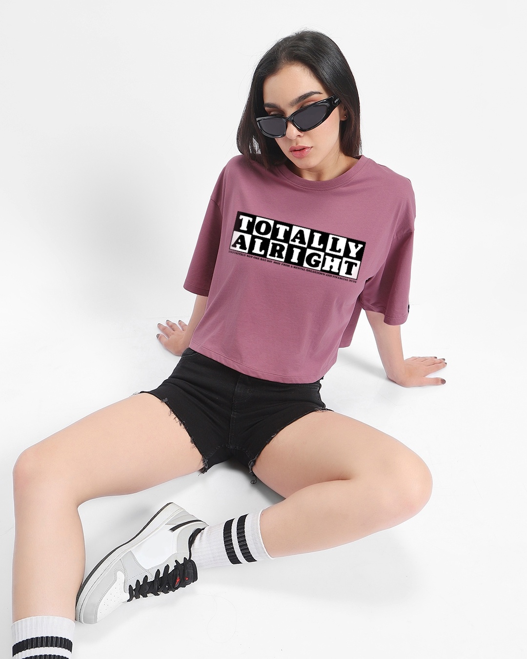Women's Purple Totally Alright Typography Short Top