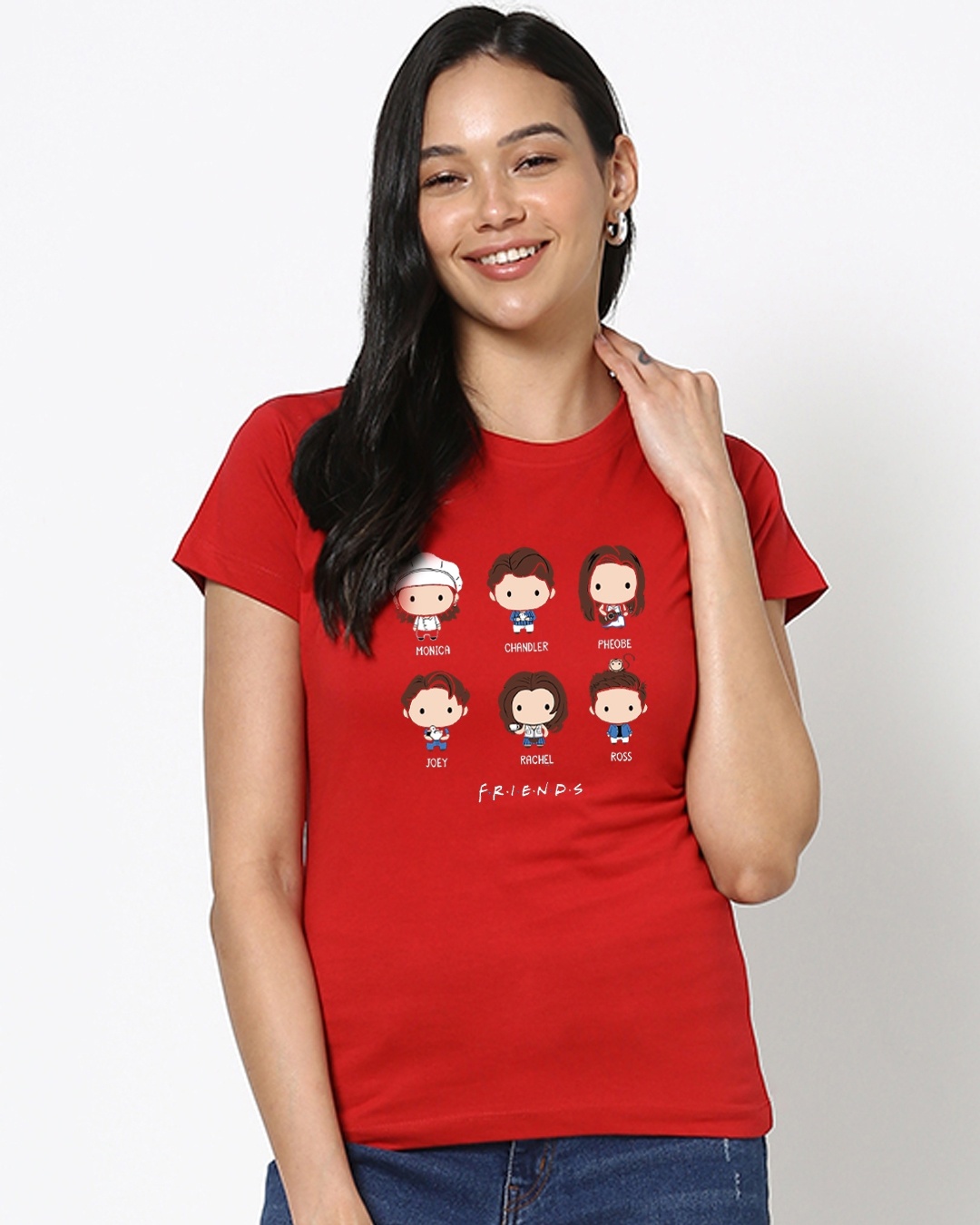Women's Red Chibi Friends Graphic Printed T-shirt