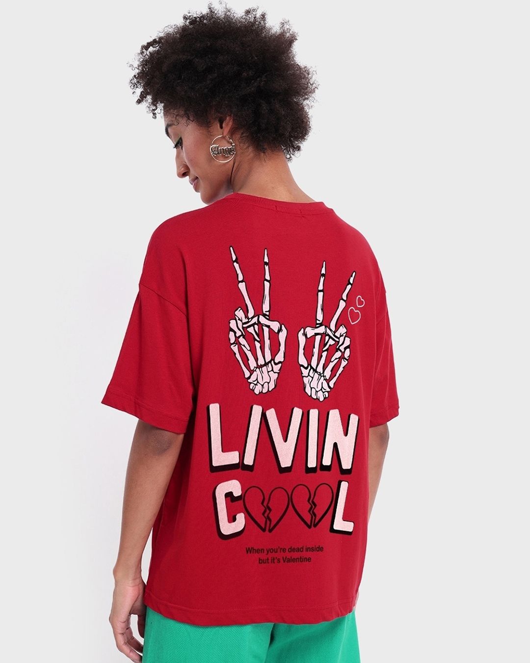 Women's Red Living Cool Graphic Printed Oversized T-shirt