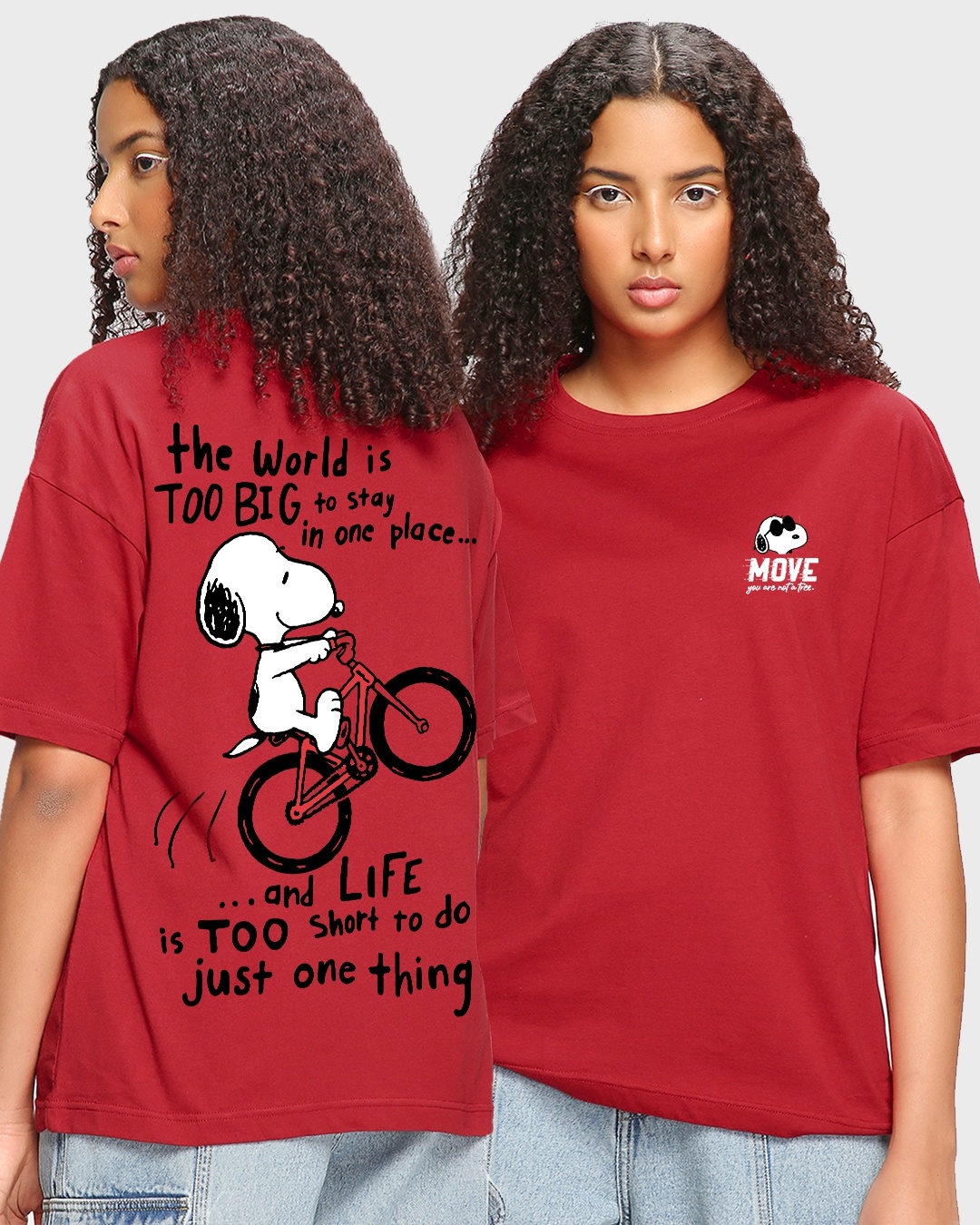 Women's Red Move On Graphic Printed Oversized T-shirt